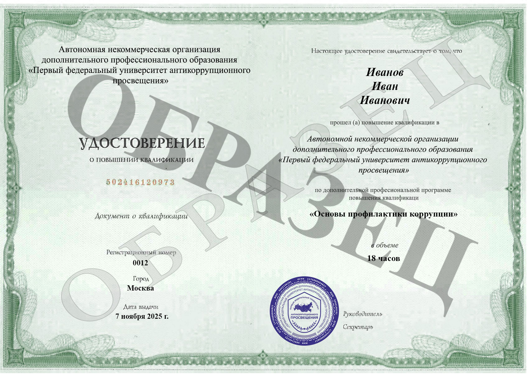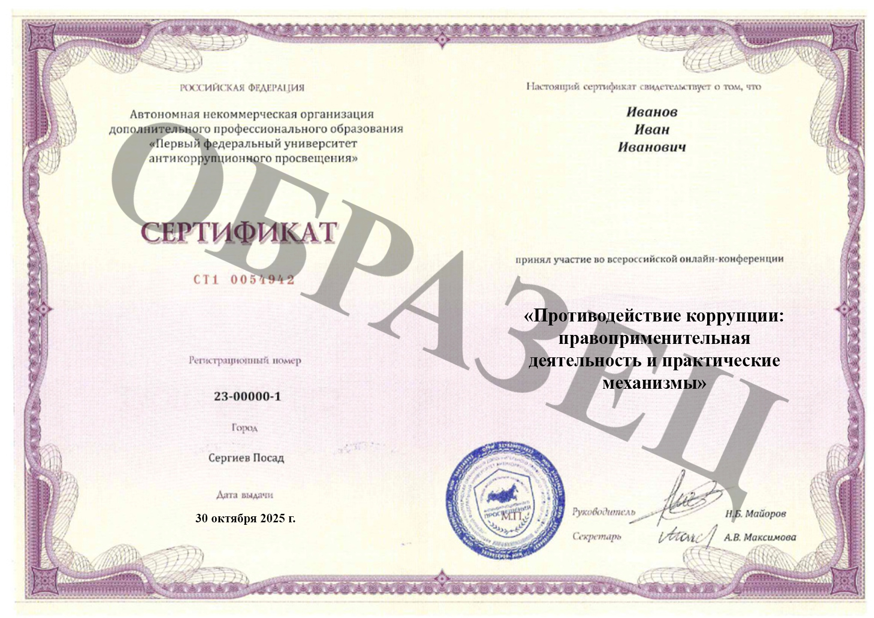 Участники конференции «Противодействие коррупции: правоприменительная деятельность и практические механизмы» от 30 октября 2025 года могут записаться на курс профессиональной переподготовки "Специалист в сфере предупреждения коррупционных правонарушений" с выдачей диплома о профессиональной переподготовке.